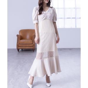 ワンピース 切替レースパフスリーブマーメイドワンピース「パーティー ドレス 結婚式 お呼ばれ オケージョンドレス 成人式 二次会 同窓会 セレモニー」