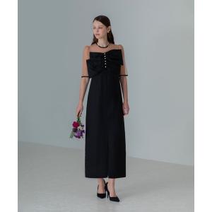 ドレス 「BONLECILL noir」ベロアパイピング キャンディスリーブ フラワーレースドレス