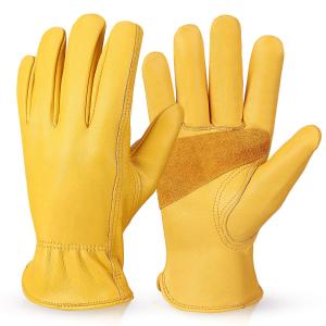 OZERO 革手袋 作業用厚手牛本革5倍の耐久性 耐熱グローブ キャンプ手袋: 溶接 焚き火 防災グッズ 耐火 耐摩耗 メンズ レディース