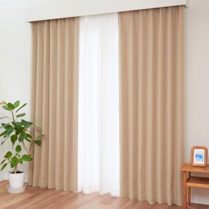 カーテン研究所≪二級遮光リネン風ナチュラル厚地 サンドベージュ≫ 幅100cmx丈190cm 2枚組 2級遮光 形状記憶 遮熱 保温 洗える ナチュ