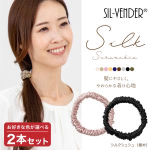 シュシュ 送料無料 シルク100% 2本セット 幅約1cm 小さめ ミニ ヘアアクセサリー ヘアゴム 大人 キッズ おしゃれ しゅしゅ 抜け毛 かわいい 美髪 艶髪