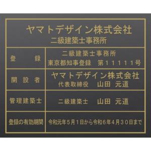 二級建築士事務所看板【アクリル艶消し黒色3mm厚】 400mmx350mm おしゃれな二級建築士事務所登録票金色文字
