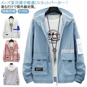UVカットパーカー 紫外線対策 配色 薄手 軽量 メンズ 接触冷感 ラッシュガード 日焼け防止 サマージャケット フード付き マウンテンパーカー アウ