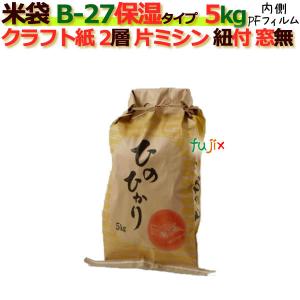 米袋 5kg 印刷 ひのひかり片ミシン 窓なし ひも付 クラフト袋 2層 保湿タイプ 200枚/ケース B-27_PEフィルム