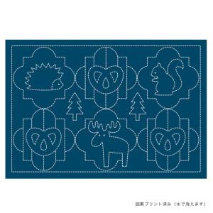 刺繍 刺しゅう布 オリムパス 刺し子布 印刷済み布パック 北欧モチーフのランチョンマット 森の動物クッキー