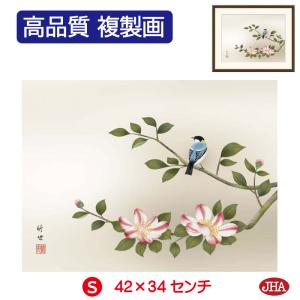 JHA 絵画 インテリア 額入り 額絵 日本画 花鳥画 冬飾り「山茶花に小鳥」田村竹世(三美会)高品質複製画 W420×H340 NK0-KCF-8S(代引き不可)ジクレー版画