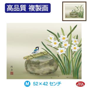 JHA 絵画 インテリア 額入り 額絵 日本画 花鳥画 冬飾り「水仙に小鳥」長江桂舟(三美会)高品質複製画 W520×H420 NK0-KCF-9M(代引き不可)ジクレー版画