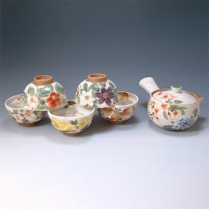 熊谷聡商店 急須茶器揃 KTA592「白掛彩草花 6点セット」京焼くまがい メーカー取寄品(代引不可)