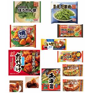 冷凍野菜も入ったお家居酒屋10種 宮崎産ほうれん草 国産塩えだまめ 大阪王将 餃子 ニチレイ唐揚げ 粉もん イカの天ぷら 鶏つくね シメに焼きおにぎり
