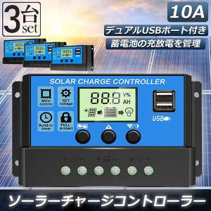 ソーラーチャージ コントローラー 3個セット 10A 12V 24V 鉛蓄電池車バッテリー充電コントローラー USBポート 付き LCD液晶表示 ソー
