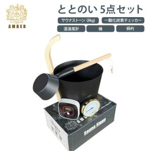 AMBER ととのい5点セット TーWORKS サウナストーン 8キロ 一酸化炭素チェッカー 湿温度計 桶 /海外×/メーカー直送