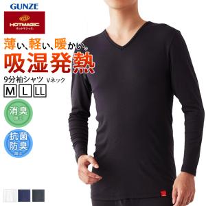 GUNZE ホットマジック インナーシャツ 9分袖 長袖 Vネック メンズ トップス 暖かい グンゼ MH1909 抗菌防臭 消臭 ベトナム製