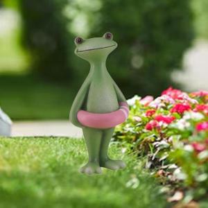 カエルの像の置物 卓上 カエルの置物 リビングルーム パティオ 屋内 屋外用 ピンク 水泳リング