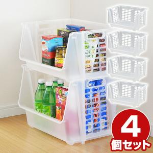 収納ケース 収納ボックス ナチュラ ストックス/浅型 4個セット 積み重ねバスケット 浅 ボックス バスケット スタッキングバスケット ストッカー 積み重ね