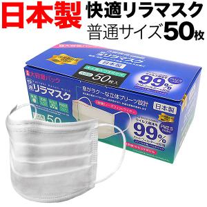 【爆買】 日本製 国産サージカルマスク 全国マスク工業会 快適リラマスク 3層フィルター 不織布 使い捨て 50枚入 普通サイズ [日テレZIP・テレ東WBSで紹介]