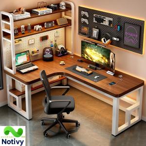 パソコンデスク 勉強机 ゲーミングデスク 幅120-180cm 学習デスク 無垢材天板 厚さ2.5cm 金属製脚部 頑丈な耐荷重 作業机 オフィスデスク 天板収納棚付き 組み立