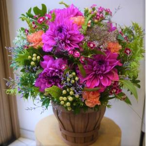 生花ダリアの華やかアレンジ*花 ギフト 開店祝 誕生日 送別 歓送迎会 送別 卒業 結婚 お祝い 記念日 プレゼント 母の日 父の日 敬老の日
