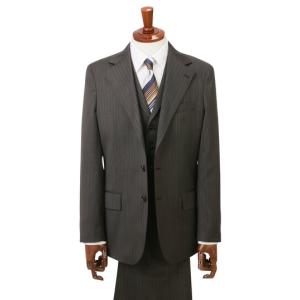 【洋服の青山】スリーピース スーツ メンズ スリム 秋冬 ブラウン 茶色 ストライプ 3つボタン段返り ベスト付き サイドベンツ ワンタック ストレッチ ビジネス