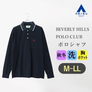 【洋服の青山】ポロシャツ 長袖 メンズ 春夏秋冬 ネイビー 紺 無地 ワンポイント ロゴ刺繍 鹿の子 リブ襟 胸ポケット 洗える カジュアル 普段着 旅行 普段着