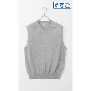 【洋服の青山】毛玉になりにくい ウール100% Vネックニットベスト メンズ 秋冬 グレー 灰色 無地 大きいサイズ 洗える 静電気防止 保温 暖かい シワになりにくい
