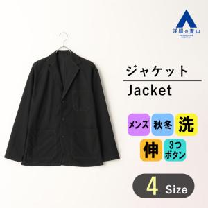 【洋服の青山】メンズ ジャケット ゼロプレッシャースーツ セットアップ可 単品 春夏用 ブラック 黒 無地 4WAY ストレッチ ウォッシャブル 洗える 撥水 軽い
