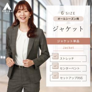 【洋服の青山】セットアップ可 テーラードジャケット レディース 春夏秋冬 チェック ブラウン 茶色 1ボタン ジャケット 1ボタン 総裏 オフィスカジュアル