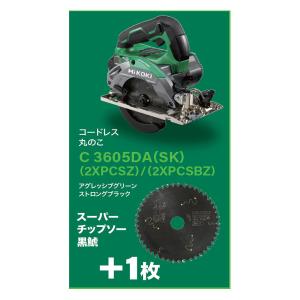 【限定特価商品 スーパーチップソー黒鯱+1枚付 】ハイコーキ[HiKOKI] 36V-2.5Ah 125mmコードレス丸のこ C3605DA (SK)(2XPCSZ) (本体色/緑)