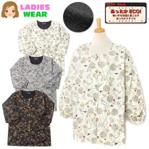 送料無料 婦人 レディース 裏フリース スモック エプロン 前開き 防寒 あったか素材 エステルタフタ 保温性 花小鳥柄 sl-0687 メール便対応