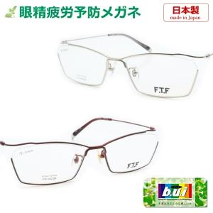 眼精疲労予防レンズビュイセット 日本製 FTF-002 軽量チタン アンダーリム スクエア パソコン作業に最適 BUI 度なし 度入り PCメガネ ハセガワ