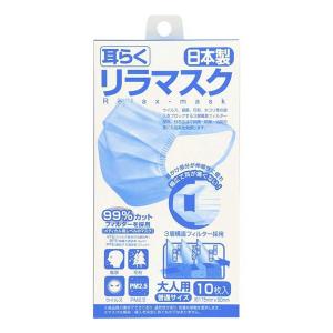 日本製 耳らくリラマスク3層仕様 10枚入 大人用サイズ 約175mm×90mm
