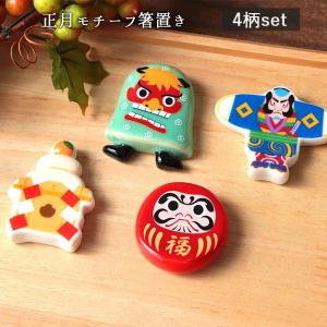 お正月 縁起物 箸置き 4個セット 磁器 はし置き カトラリーレスト 箸 おはし 縁起物 迎春 だるま 凧 鏡餅 獅子舞 おもてなし おしゃれ かわいい 和ギフト 爆買