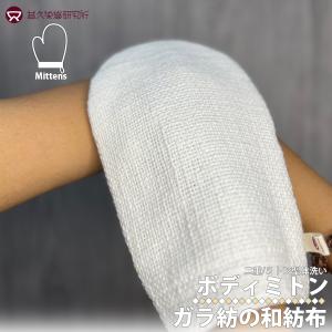 益久染織研究所 ガラ紡の和紡布ボディミトン 和紡布 和紡ボディミトン 和紡布2重仕立て ミトン型身体洗い 石鹸不要 区分N 1009-111