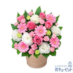 【お祝い】花キューピット 敬老の日 誕生日 記念日 結婚祝い 歓送迎 還暦 開店開業 卒業入学 生花 ピンクの華やかアレンジメント