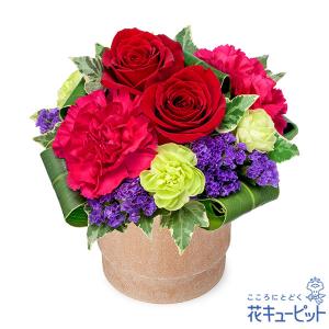【お祝い】花キューピット 敬老の日 誕生日 記念日 結婚祝い 歓送迎 還暦 開店開業 卒業入学 生花 赤バラのミニポットアレンジメント