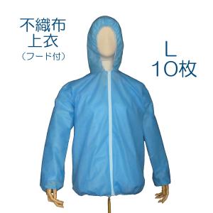 不織布 使い捨て 上着 上衣 L 10着 フード付 ブルー 2-03B ズボン併用可