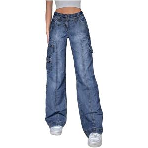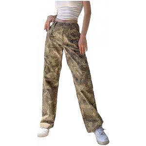 デニムパンツ レディース ジーンズ ストレート デニム ゆったり カジュアル ハイウエストデニム 厚手 ミリタリーパンツ シ(sc07620)
