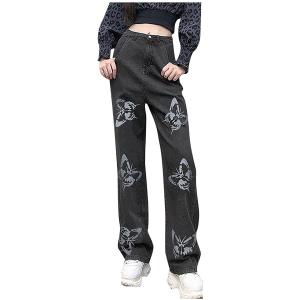 デニムパンツ レディース ジーンズ ストレート デニム ゆったり ハイウエストデニム ベーシックデニム シンプル きれいめ (sc07085)