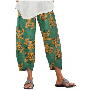 レディース ワイドパンツ ロングパンツ パンツ ガウチョパンツ 綿麻 大きいサイズ ズボン ゆったり 花柄 着痩せ 体型カバ(sc05672)