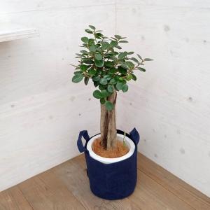 観葉植物 パンダガジュマル 8号ルーツポーチ鉢カバー入り(ネイビー・水分チェッカー付)*