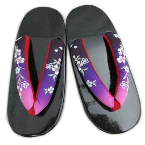 【訳有り 少難あり】 下駄 本桐 女性用 フリー 24cm ラメ黒台 濃紫ピンクぼかし地撫子刺繍鼻緒 H・L 浴衣 ゆかた