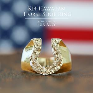 K14 ハワイアン ホースシューリング 馬蹄 Hawaiian jewelry Puaally プアアリ 手彫り 指輪 14金 ネイティブ メンズ サーフィン 海 男性 セレブ ラッキー