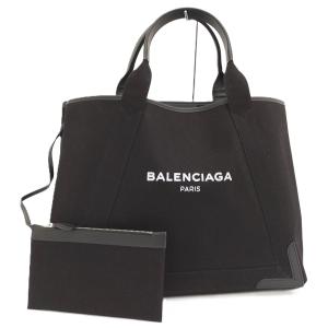 BALENCIAGA ネイビーカバスS トートバッグ キャンバス レザー ブラック 339933