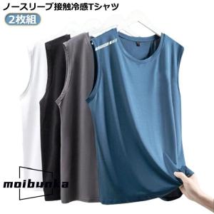 運動着 2枚セット タンクトップ メンズ ノースリーブ Tシャツ 薄手 接触冷感 吸汗速乾 ドライ 夏 涼しい ストレッチ 2枚セット 無地 袖なしT