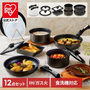 フライパンセット ih ガス アイリスオーヤマ 蓋付き エッグパン 深型 幅広 鍋 取っ手が取れる 高耐久4層構造 ダイヤモンドコート MEGI-12S *【JB】