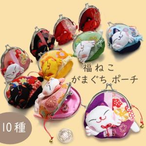 福猫 がま口 ポーチ 小銭入れ ネコ ねこ 猫 金運や幸運を招く招き猫デザインが魅力の和風アイテム。選べる風水カラー全10種類!
