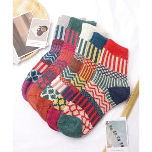 靴下 「5足セット」トライバル柄ボリュームニットソックス レディース
