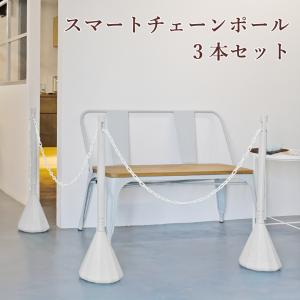 スマートチェーンポール 3本セット ホワイトシルバー 1.5m or 2mチェーン2本付き/ 駐車場 駐車場ポール バリカー sf-83-ws-3set