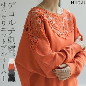 ニット 刺繍 デコルテ見せ レディース チュニック セーター トップス ドルマン ハイゲージ ハイゲージニット 透かし編み 透かし編みニット Vネック 長袖 薄手