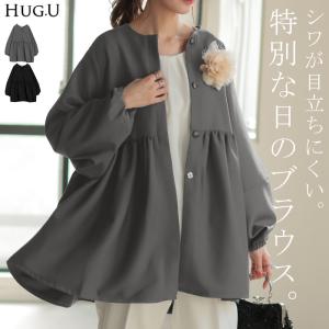 ブラウス ペプラム 体型カバー チュニック レディース トップス シャツ ノーカラー ロング 長袖 羽織 アウター ライトアウター