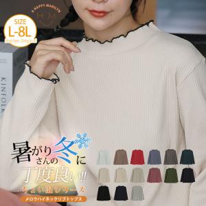 大きいサイズ レディース トップス 新色追加 ちょい温シリーズ メロウ ハイネック リブ トップス プルオーバー LL 3L 4L 5L 6L 7L 8L A